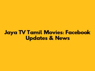 Jaya TV Tamil Movies: Facebook Updates & News